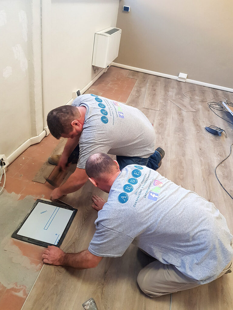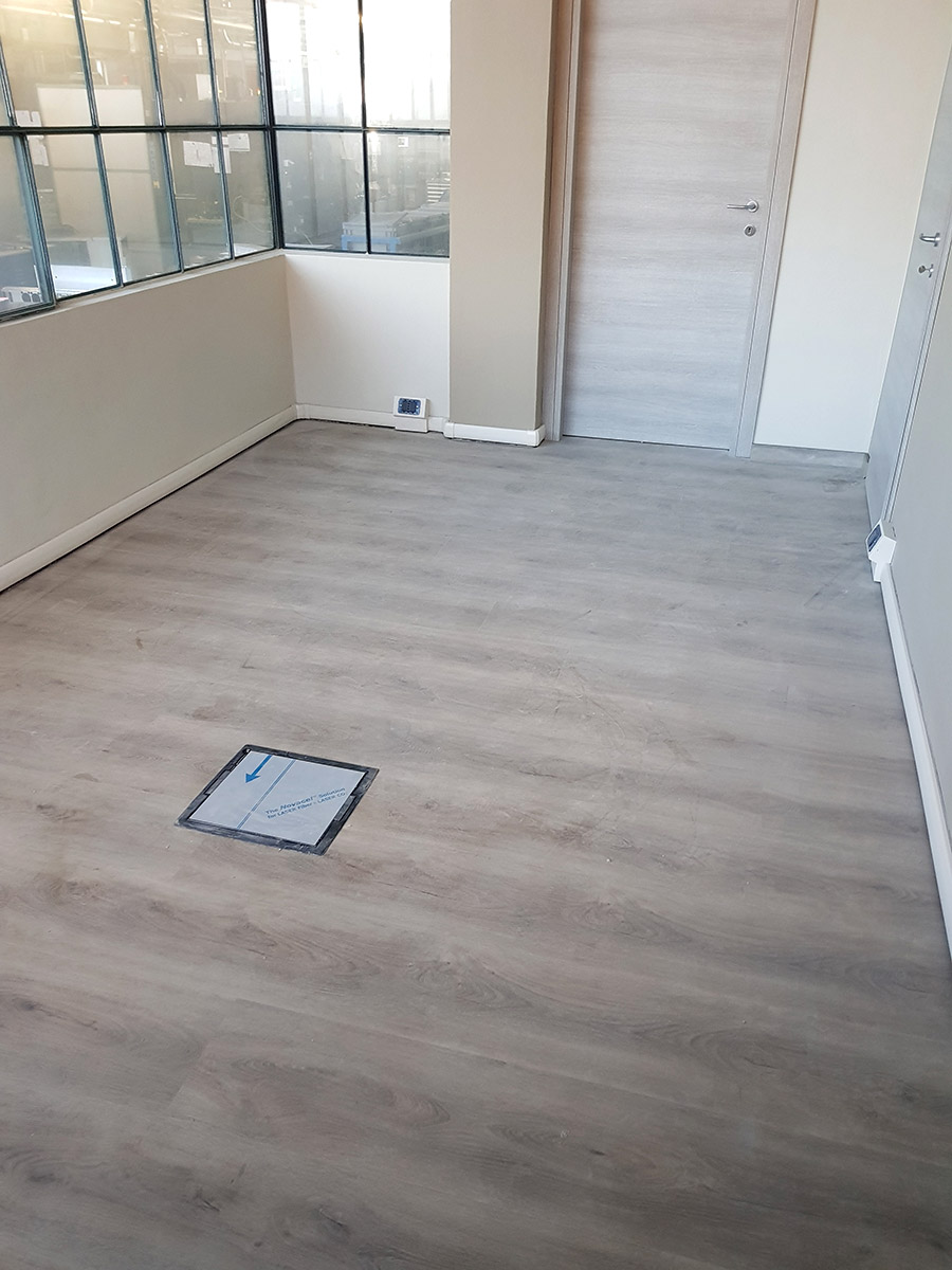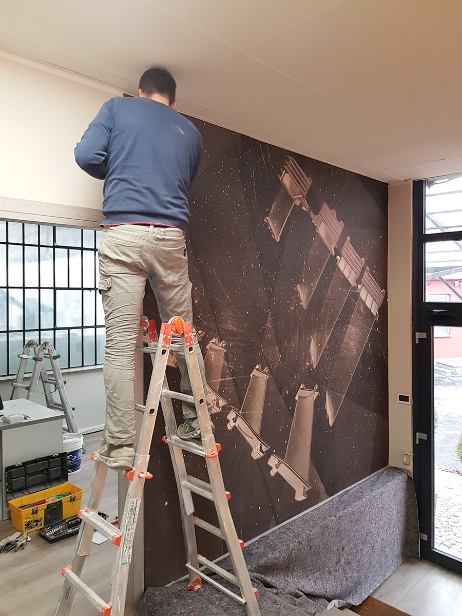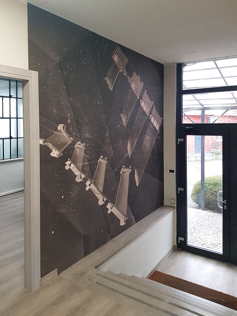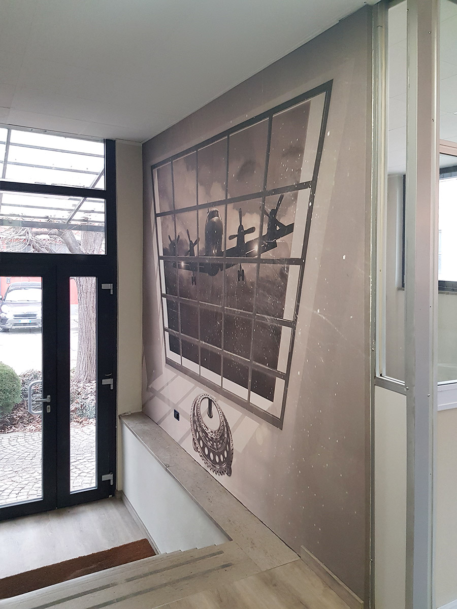 Per le pavimentazioni, è stata scelta una soluzione in PVC a doghe con effetto legno, mentre per i serramenti sono stati utilizzati modelli in PVC a taglio termico di ultima generazione. Le decorazioni hanno incluso l’applicazione di idropittura e carta da parati personalizzata con immagini raffiguranti componenti della produzione del cliente.